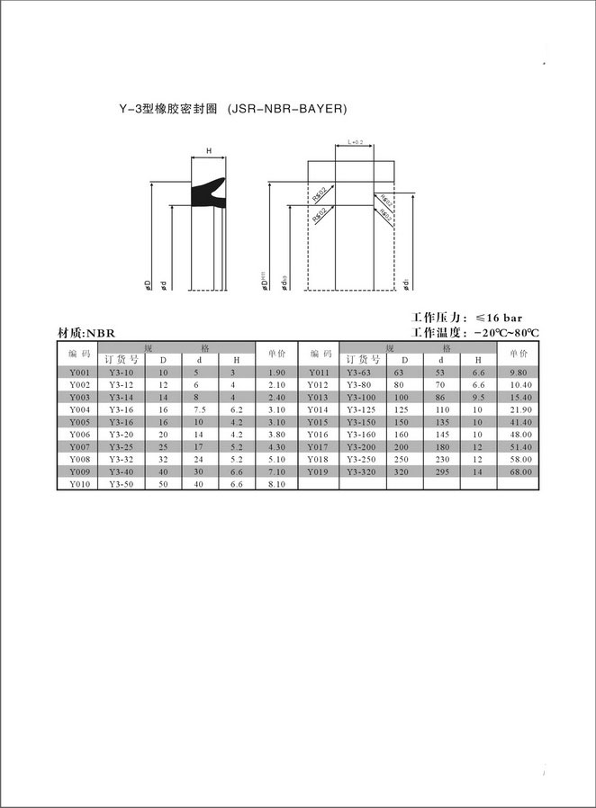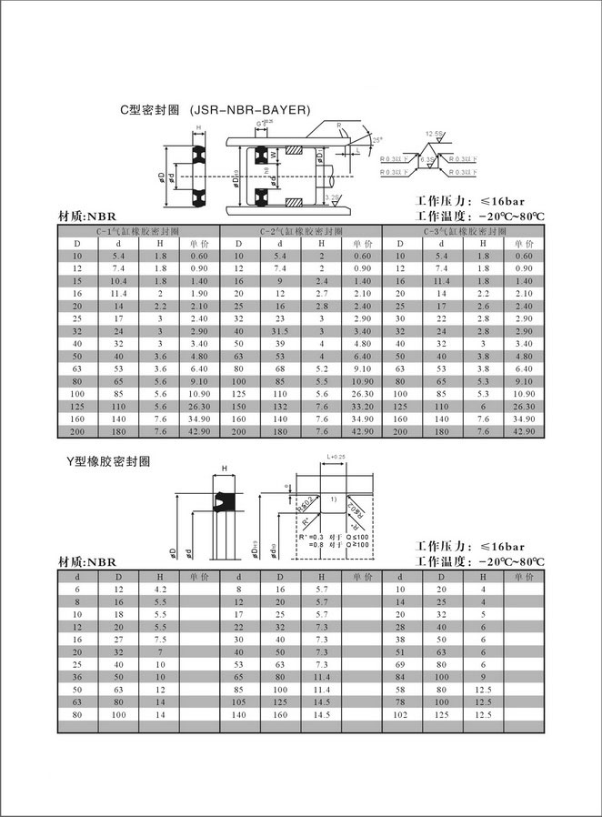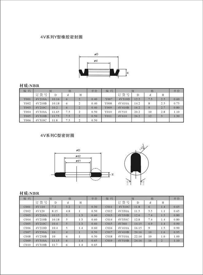 4V.C型,Y型氣缸專用密封件
