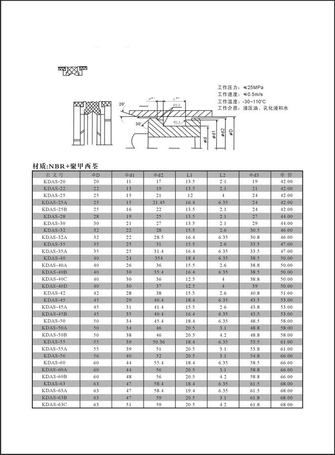KDAS活塞專用組合密封件 材質:NBR+聚甲西荃